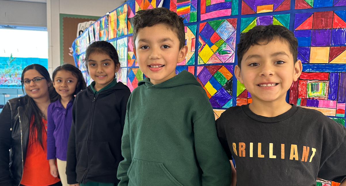 At Rocketship Brilliant Minds, the Kinder- 2nd grade students designed tiles for a grade level freedom quilt in their art class.